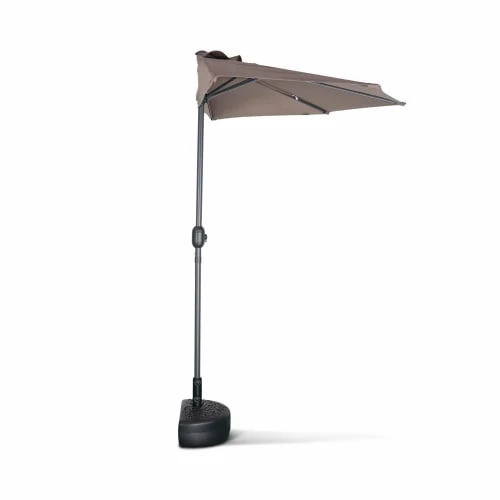 Profitez de votre balcon ou de votre terrasse tout en étant protégé du soleil grâce à ce demi-parasol. Conçu pour les petits espaces extérieurs, il prend très peu de place.Sa toile en polyester d’une densité de 180g/m² offre un ombrage de qualité et une protection aux UV (50+). Ce parasol s’adosse au mur et se fixe sur sa demi base (PUHALF180BASE : non fournie). Son mât en aluminium est robuste et ses baleines sont en acier. La manivelle anti-retour permet une ouverture facile et sécurisée.