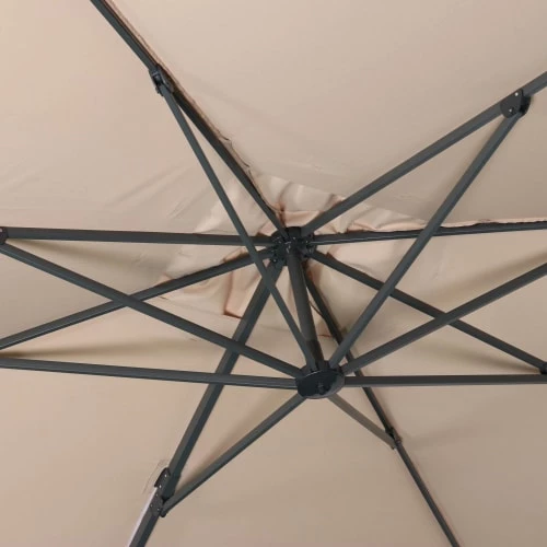Structure robuste en aluminium, recouverte de peinture anthraciteMât ovalisé, afin d’optimiser le coulissement de la poignéeToile déperlante et très dense de 240g/m²Inclinable dans 6 positions et rotatif à 360°