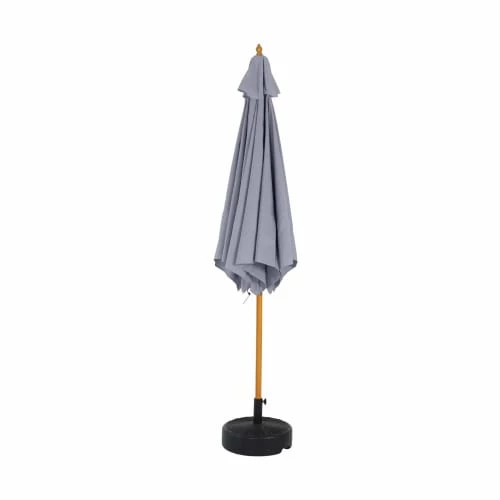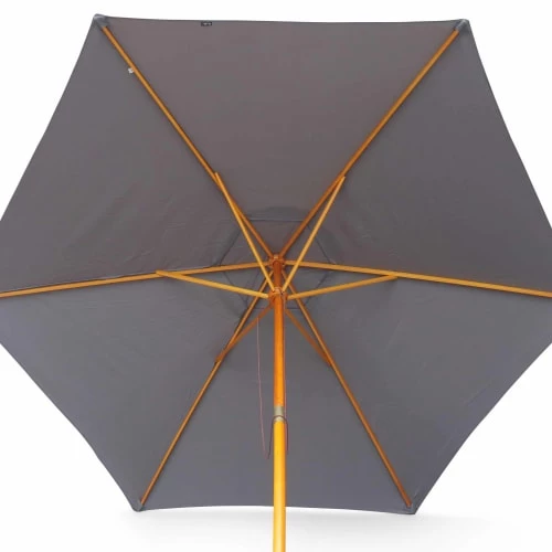 La structure du parasol Cabourg est en bois. La toile est en polyester enduit d’un produit hydrofuge. Cela la rend déperlante. Le mât s’insère dans n’importe quel pied de parasol compatible avec les mâts de 38mm de diamètre.