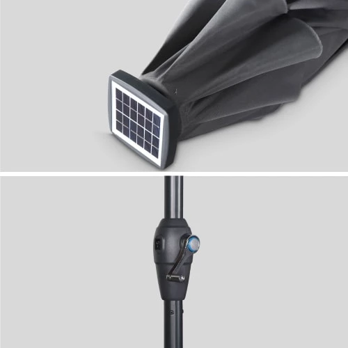 Alice’s Garden Parasols Parasol Led D 2,7m Helios Bleu Canard, Mât Central, Lumière Intégrée
