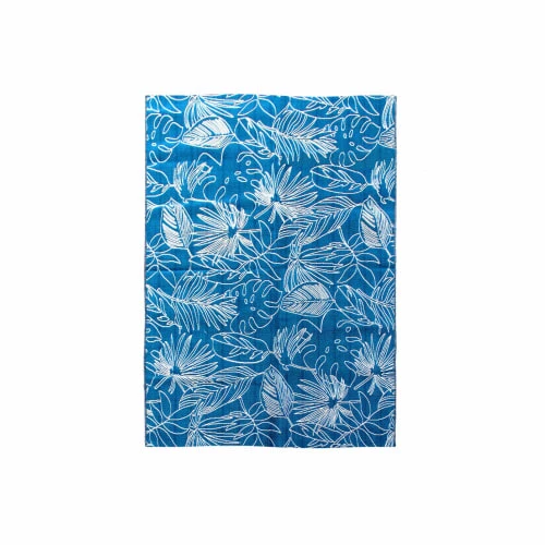 Ajoutez de la couleur sur votre terrasse ou dans votre salon avec ce tapis en polypropylène. Avec son motif exotique blanc sur fond bleu canard, il donne une touche de fantaisie à votre décoration. Le tressage du tapis fait ressortir le dessin graphique à l’aspect grain de riz.Très léger, ce tapis se déplace facilement selon vos envies ou la météo. Confortable pour marcher à pieds nus, ce tapis nécessite très peu d’entretien. Le polypropylène est une matière plastique qui se nettoie simplement avec de l’eau.