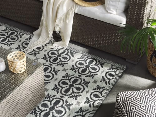 Maisons Du Monde Tapis Extérieur Tapis Et Sac Yoga Imprimé Fleurs Beiges, Noires Et Jaunes 61×170