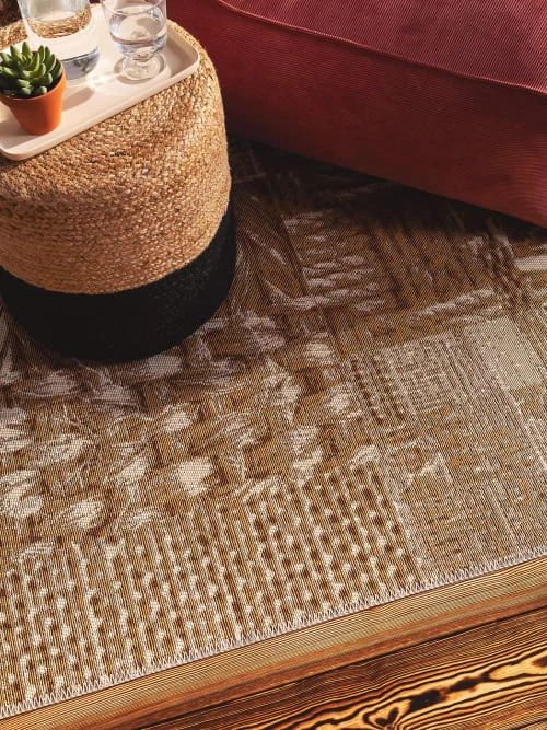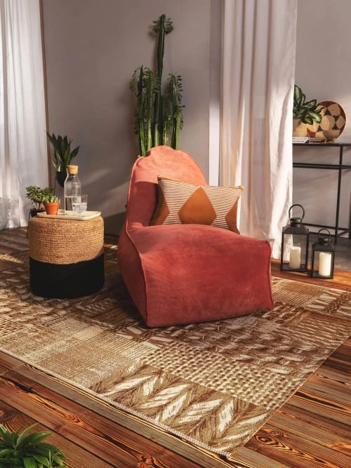 Maisons Du Monde Tapis Extérieur Tapis Et Sac Yoga Imprimé Fleurs Beiges, Noires Et Jaunes 61×170