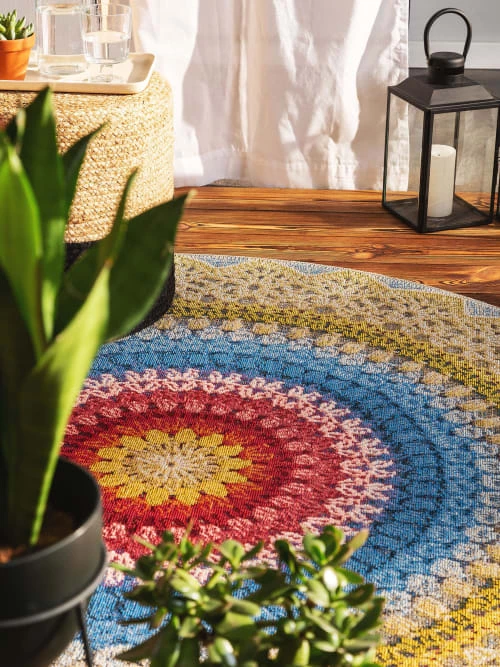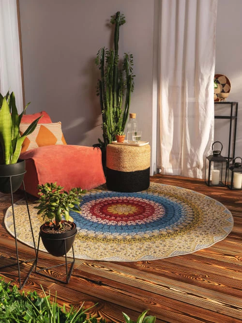 Maisons Du Monde Tapis Extérieur Tapis Rond En Polypropylène Tissé Beige Et Noir D160