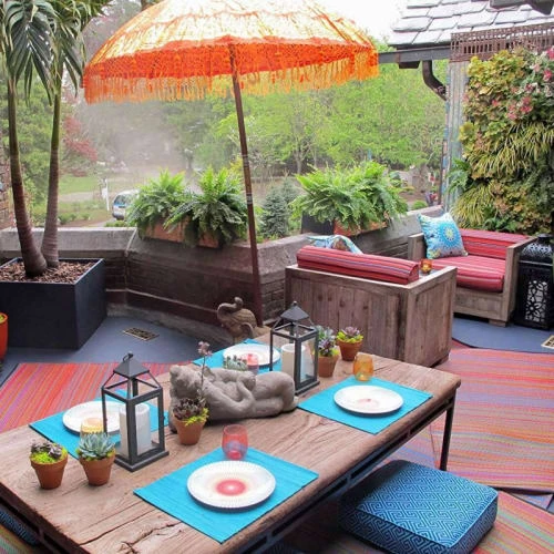 Maisons Du Monde Tapis Extérieur Tapis Vert Et écru Imprimé Tropical 200×200, OEKO-TEX®