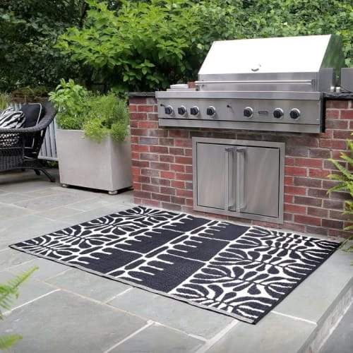 Maisons Du Monde Tapis Extérieur Tapis Rond En Polypropylène Tissé Beige Et Noir D160