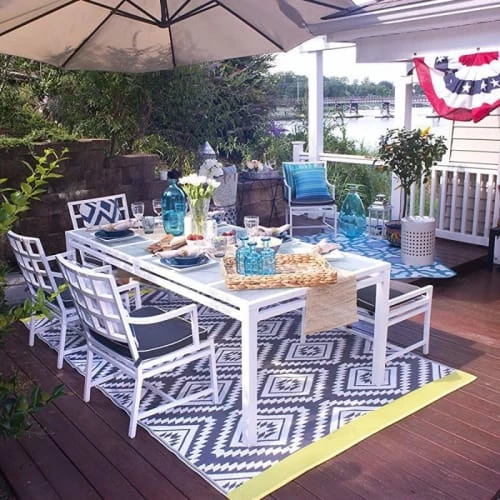 Maisons Du Monde Tapis Extérieur Tapis Vert Et écru Imprimé Tropical 200×200, OEKO-TEX®