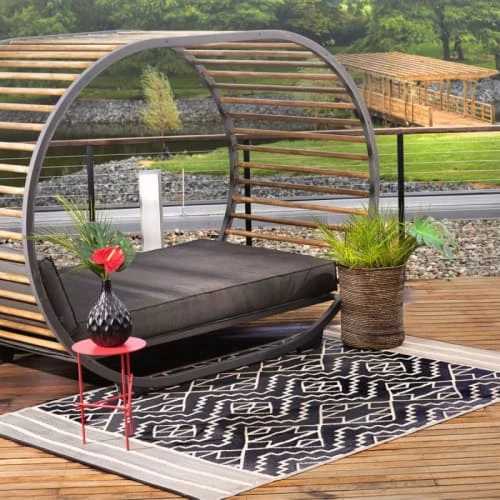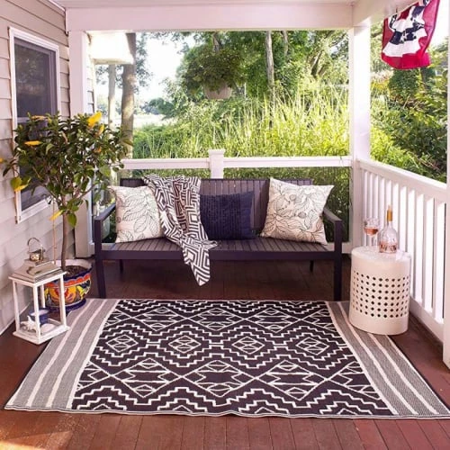 Maisons Du Monde Tapis Extérieur Tapis Rond En Polypropylène Tissé Beige Et Noir D160