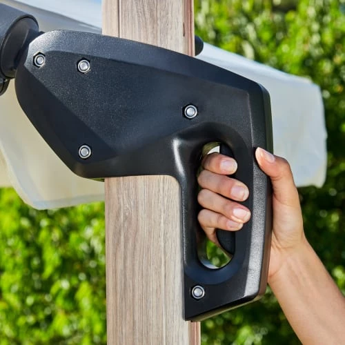 Il peut être tourné à 360 degrés et est inclinable en hauteur, ce qui vous permet de choisir l’orientation la plus pratique. Il dispose d’une poignée qui vous permet d’ouvrir et de fermer le parasol très facilement.