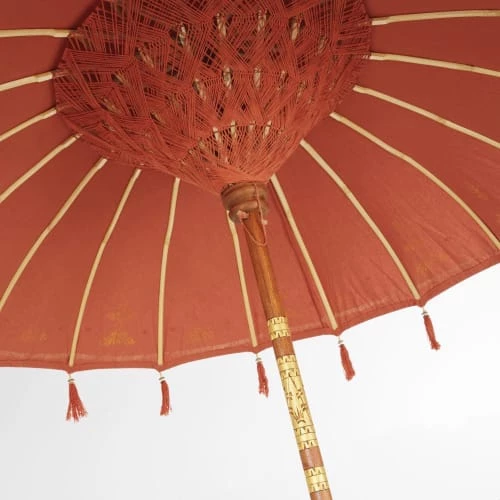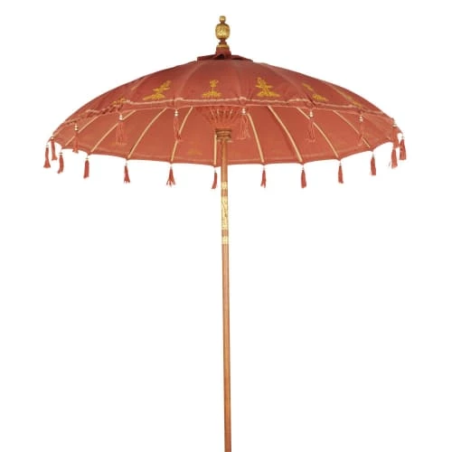 Toile : 100% coton coloris terracotta, motifs dorés