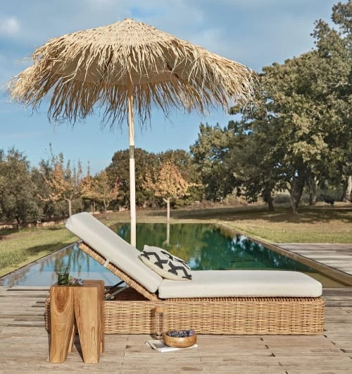 Grâce au parasol en sapin et fibre végétale tressée BAHAMAS, les températures extérieures vont grimper ! Il est composé d’un pied en sapin et d’un dessus en fibre végétale tressée, il donnera des allures de plage à votre terrasse ou votre jardin. Notre conseil : n’oubliez pas d’installer une chaise longue pour profiter pleinement sous ce parasol exotique. Ambiance tropicale garantie !
