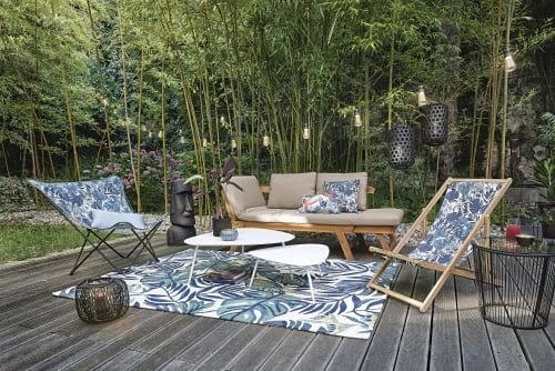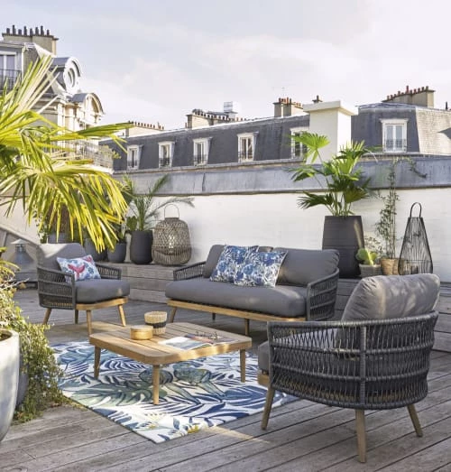 Maisons Du Monde Tapis Extérieur Tapis Rond En Polypropylène Tissé Beige Et Noir D160