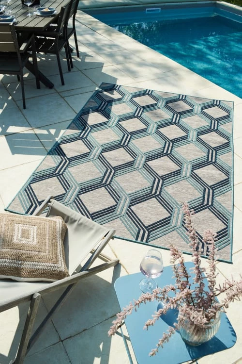 Nazar Tapis Extérieur Motif Géométrique Bleu – 200×290