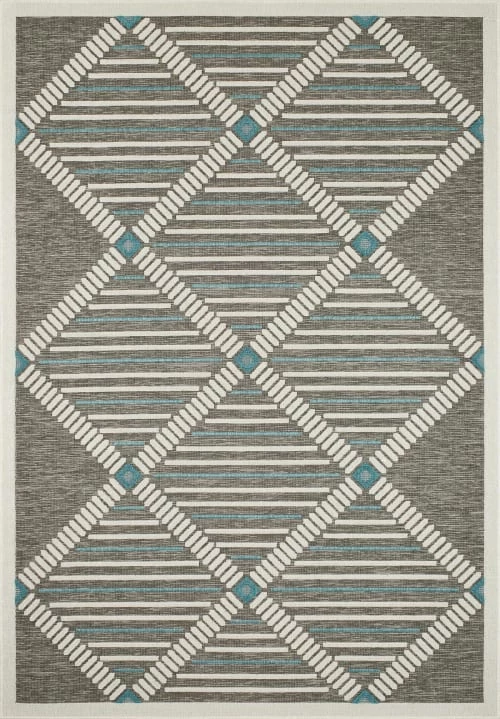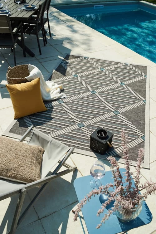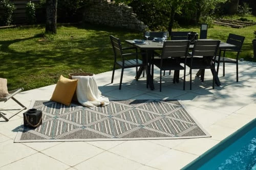 Nazar Tapis Extérieur Motif Losange Anthracite Et Bleu – 120×160