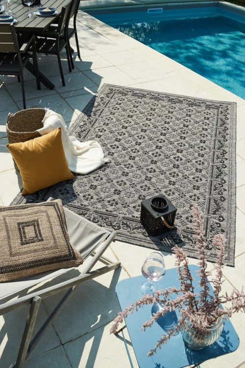 Nazar Tapis Extérieur Motif Ottoman Anthracite Et Gris – 120×160