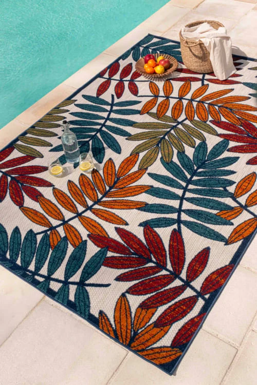 Maisons Du Monde Tapis Extérieur Tapis Vert Et écru Imprimé Tropical 200×200, OEKO-TEX®