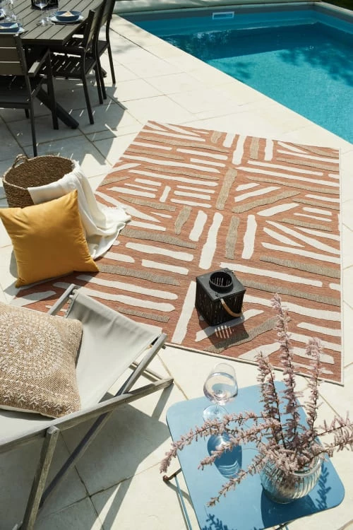 Nazar Tapis Extérieur Rayé Orange Et Gris – 160×230