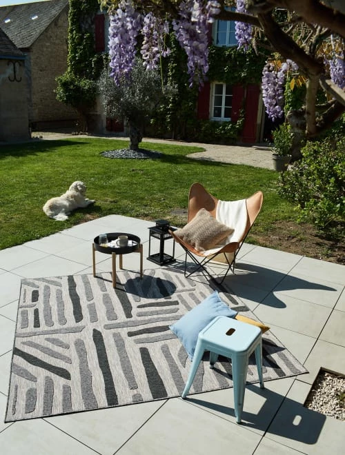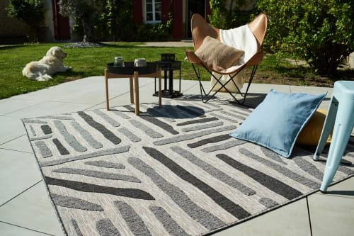 Nazar Tapis Extérieur Tapis Carré Extérieur Rayé Anthracite Et Gris – 200X200