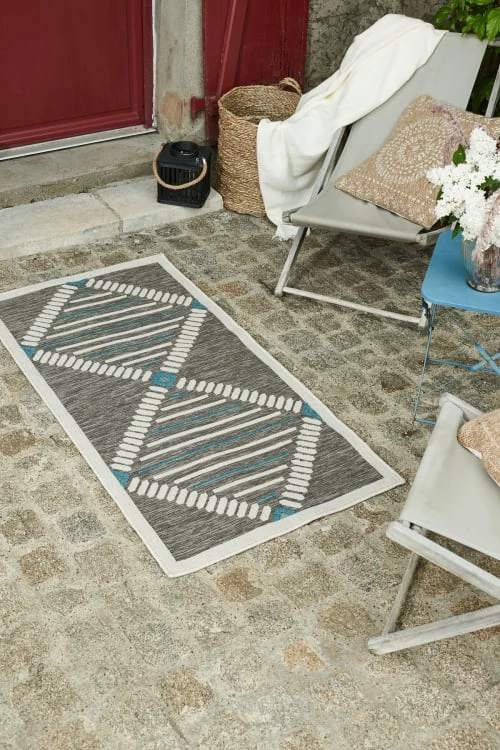 Nazar Tapis Extérieur Tapis Petite Taille Extérieur Motif Losange Anthracite – 70×140
