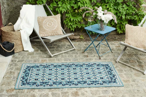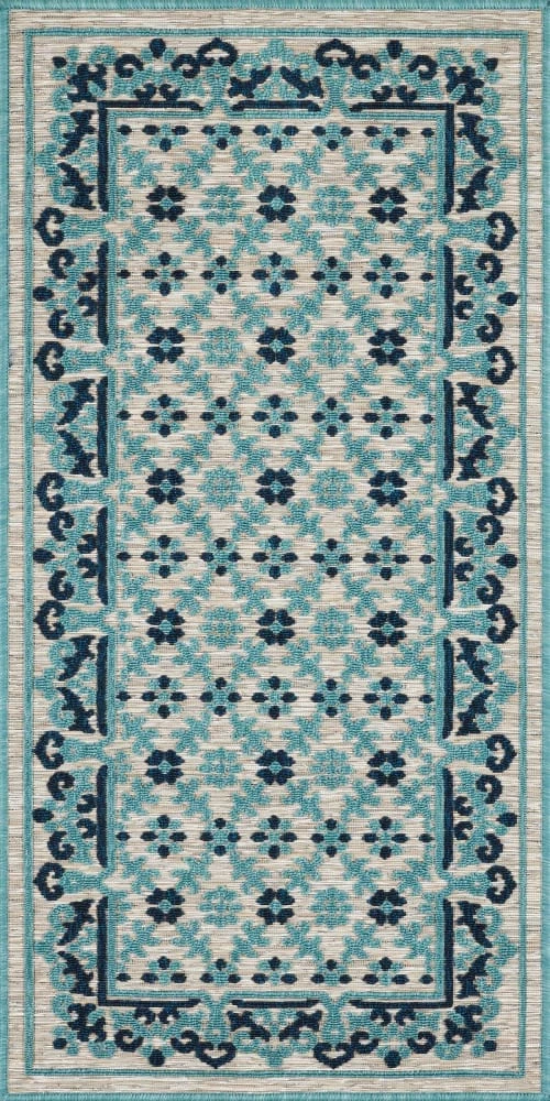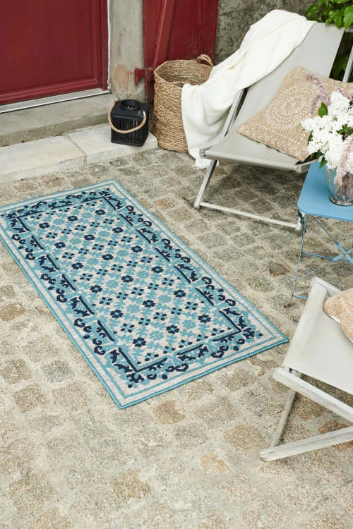 Nazar Tapis Extérieur Tapis Petite Taille Extérieur Motif Ottoman Bleu Et Gris – 70×140