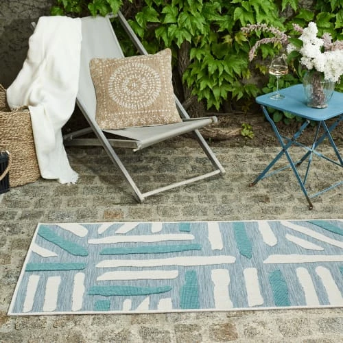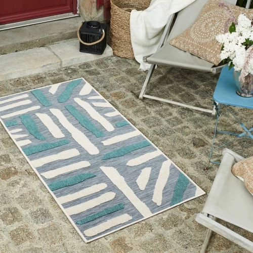 Nazar Tapis Extérieur Tapis Petite Taille Extérieur Rayé Bleu Et Turquoise – 70×140
