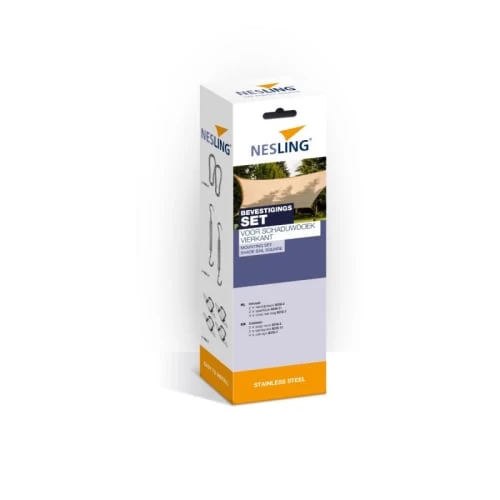 Kit de montage pour la voile d’ombrage rectangle Nesling. Le kit vous permet d’installer votre voile d’ombrage rectangulaire de chez Nesling. Vous promet une installation rapide et facile. Composition du kit : 8 accessoires en acier inoxydable : 2 tendeurs, 2 mousquetons, 4 pontets.