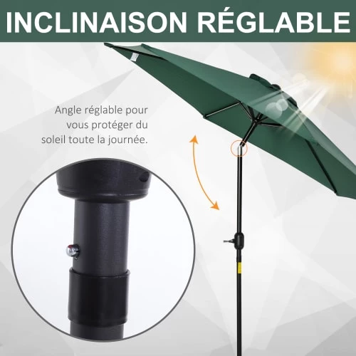 – Parasol inclinable pour une protection optimale contre le soleil à n’importe quelle heure de la journée quelle que soit la hauteur du soleil