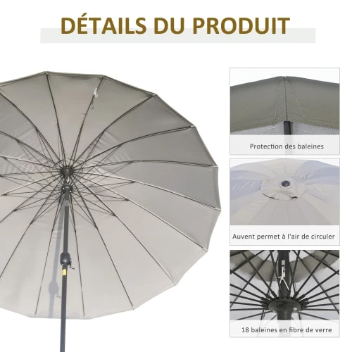 – Parasol rond inclinable Ø 2,55 m (hauteur 2,4 m) idéal pour une utilisation dans votre jardin, sur votre terrasse ou balcon