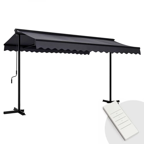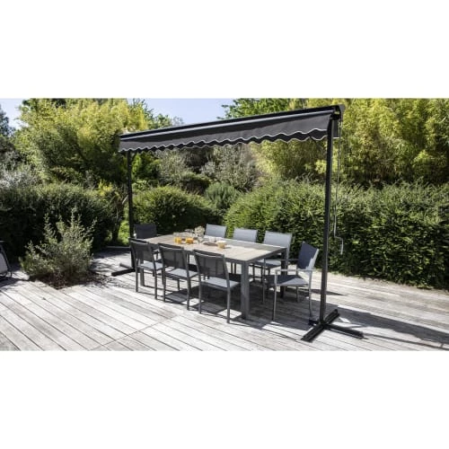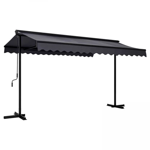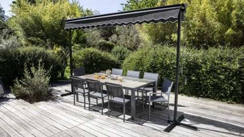 matière : Structure : Aluminium et acier traité anti-corrosion Manivelle et pied 100% acier Toile : 100% polyester 280g/m² avec enduction polyturéthane (déperlante et anti UV) Inclinaison de la toile: 40°