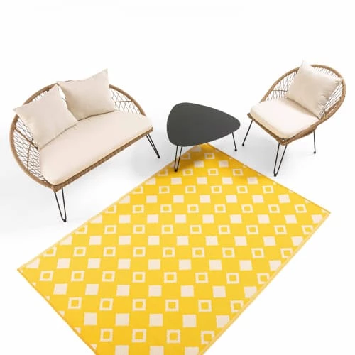 Maisons Du Monde Tapis Extérieur Tapis Et Sac Yoga Imprimé Fleurs Beiges, Noires Et Jaunes 61×170
