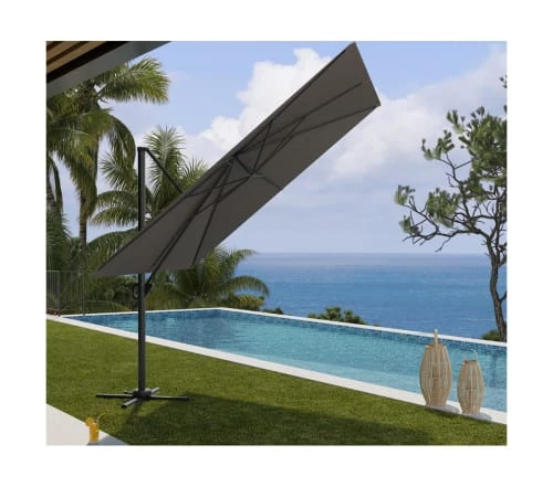 Composé de 8 baleines et d’un poteau 77x53mm ce parasol carré déporté dispose d’une rotation 360° et d’une inclinaison verticale pour vous protéger des rayons UV tout au long de la journée.