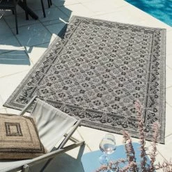Nazar Tapis Extérieur Motif Ottoman Anthracite Et Gris – 160×230