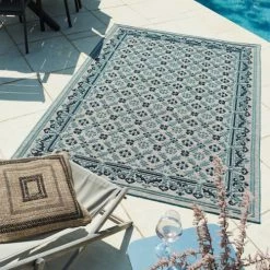 Nazar Tapis Extérieur Motif Losange Anthracite Et Bleu – 120×160