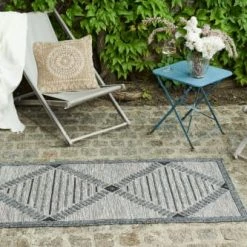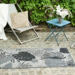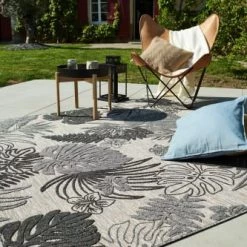Nazar Tapis Extérieur Tapis Carré Extérieur Motif Tropical Gris Et Anthracite – 200X200