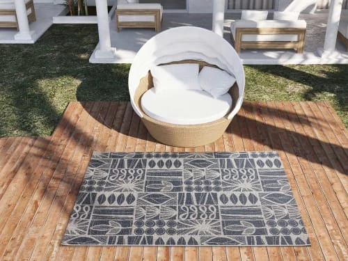 Maisons Du Monde Tapis Extérieur Tapis Vert Et écru Imprimé Tropical 200×200, OEKO-TEX®